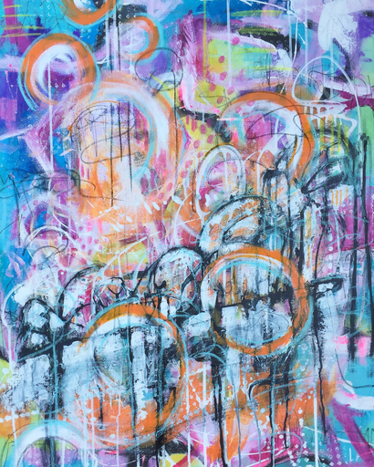 Jorine werkt met acryl, aangevuld in mixed media met oliepastel, aquarel, inkt, potlood enz. Ze heeft voorkeur voor felle kleuren, maar kan ook heel ingetogen werken.